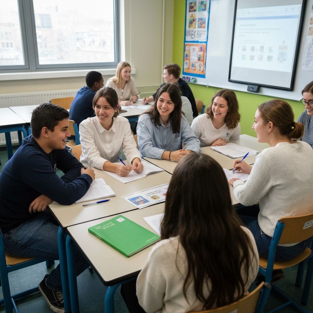 Conecta os alunos a diferentes realidades culturais, incentivando uma visão global.